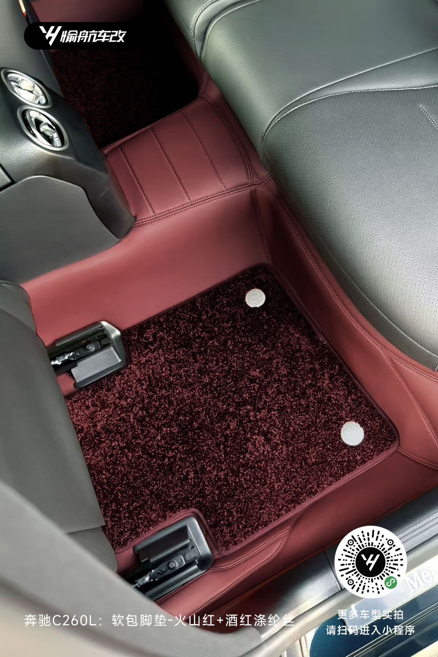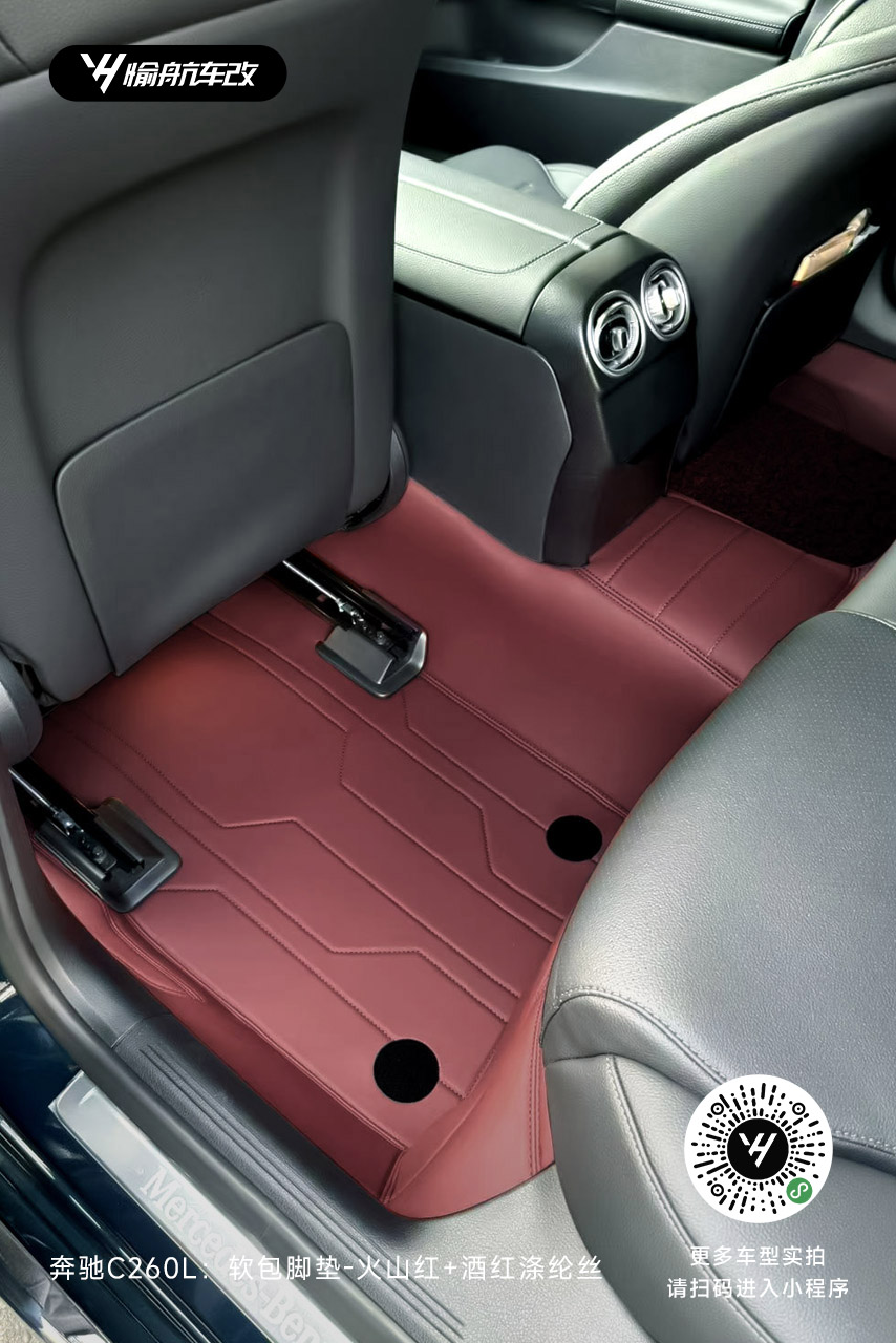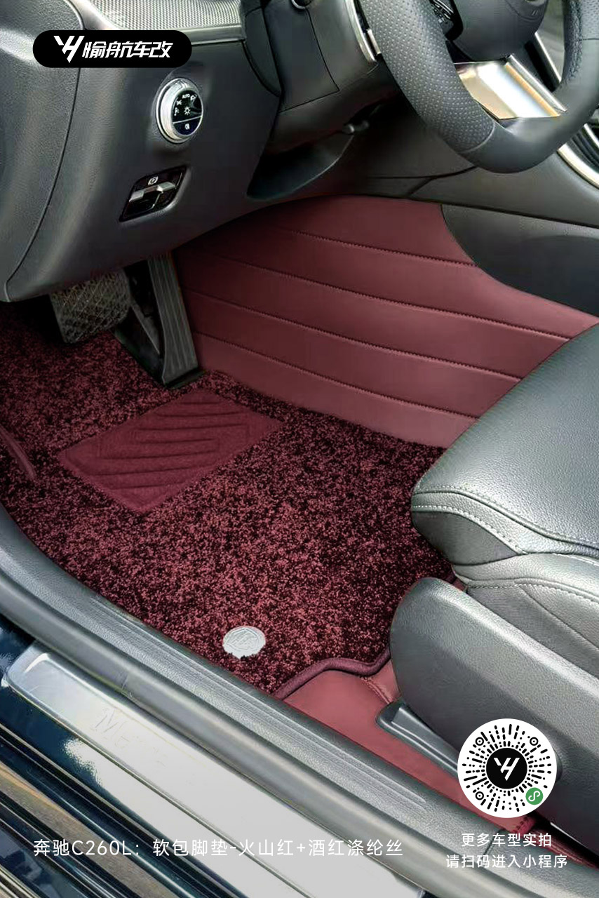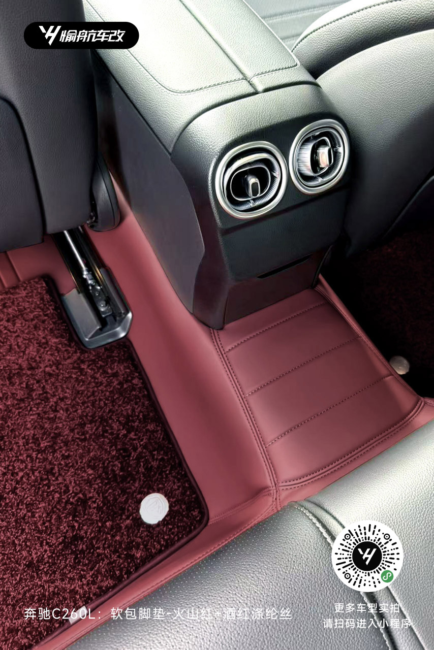 奔驰C260L|YH愉航-软包脚垫:火山红+酒红涤纶丝