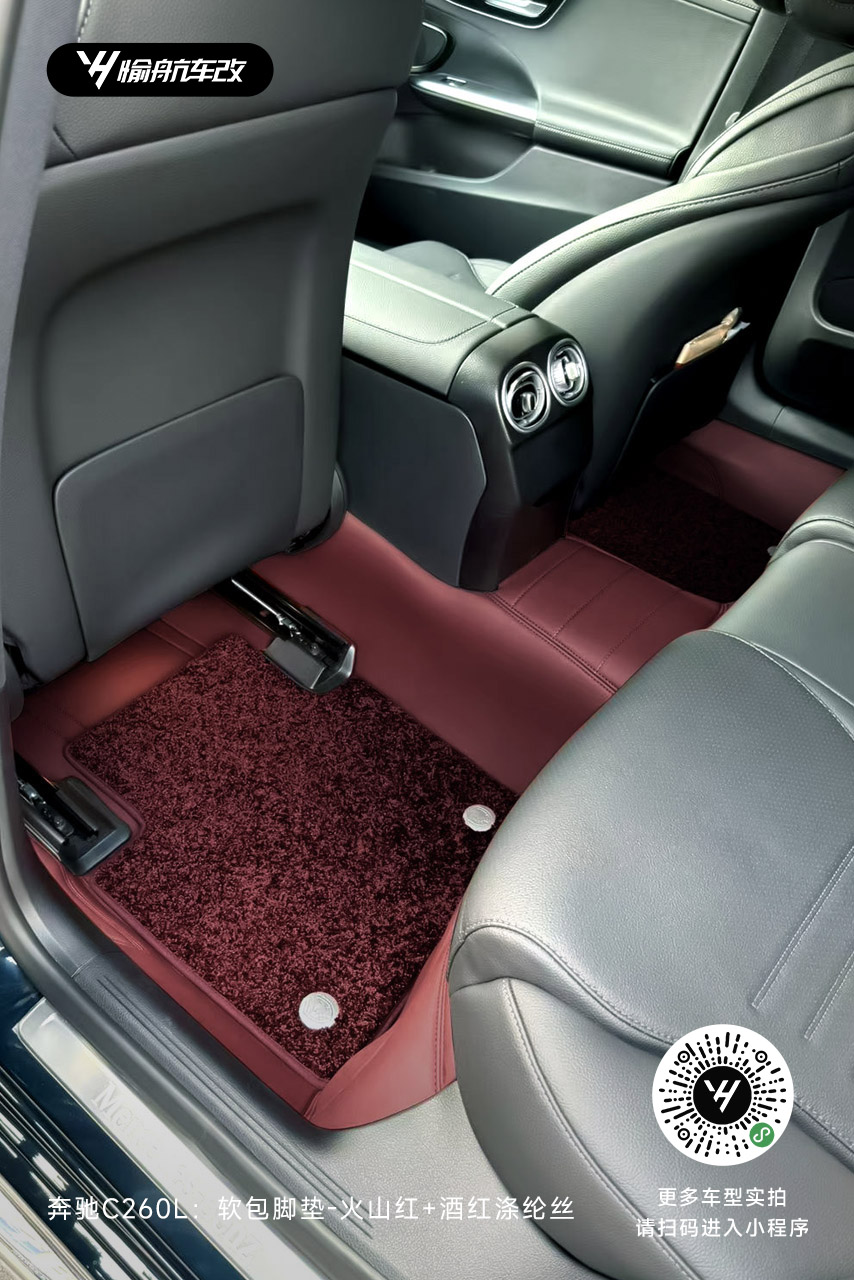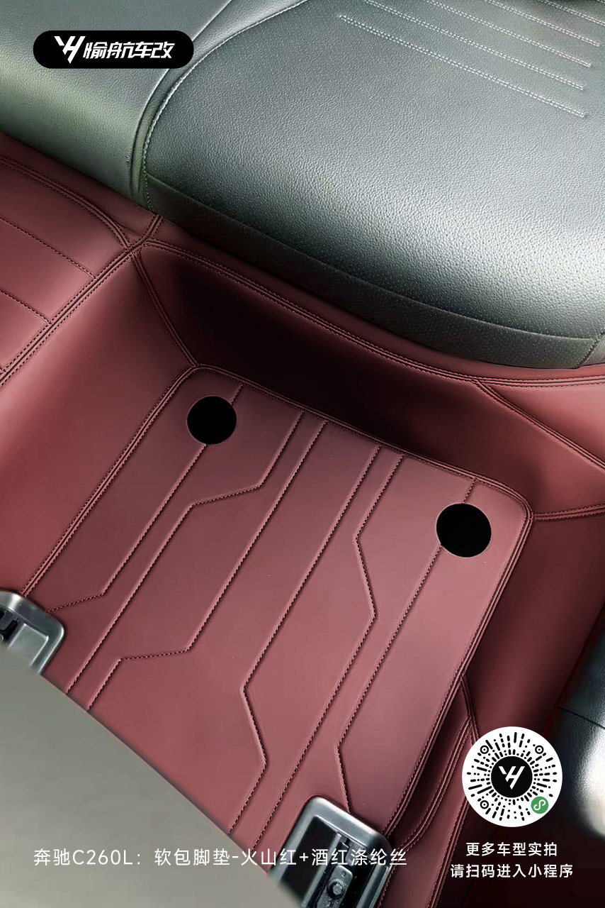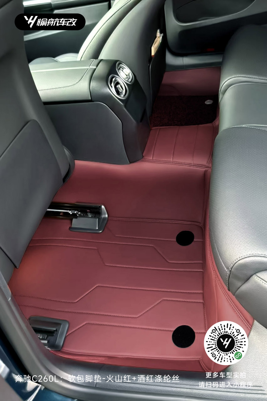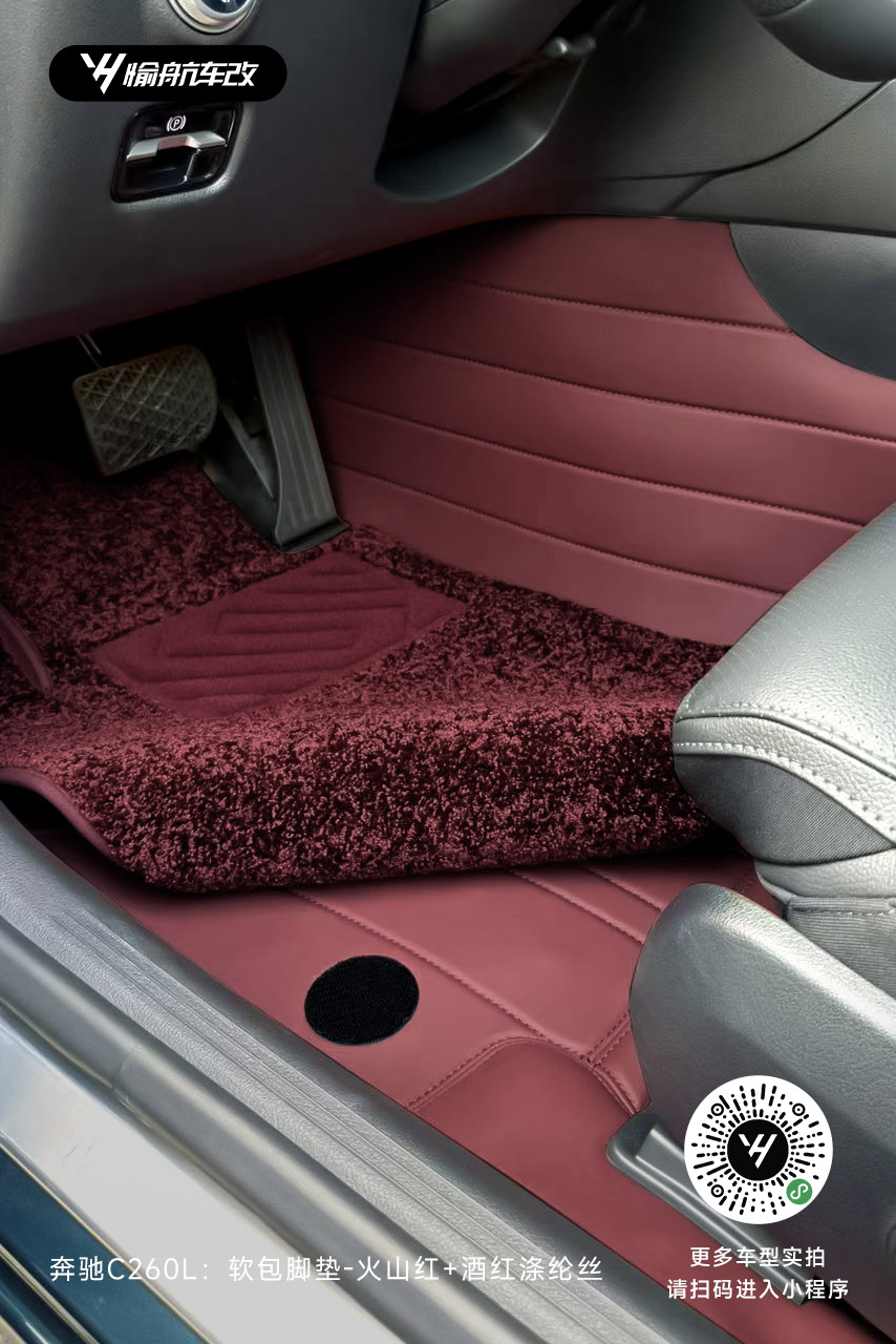 奔驰C260L|YH愉航-软包脚垫:火山红+酒红涤纶丝